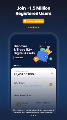 کوائن مینا کے ساتھ کرپٹو کی دنیا میں قدم رکھیں۔ 1.5 ملین سے زائد صارفین کی کمیونٹی میں شامل ہوں اور خطے کے سب سے قابل اعتماد کرپٹو ایکسچینج پر محفوظ طریقے سے ٹریڈنگ کریں۔