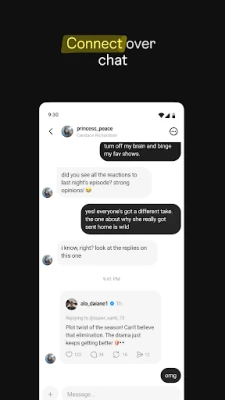 تخلیقی تبصروں، مزاح اور بصیرت انگیز معلومات کے ذریعے اپنے دوستوں اور پسندیدہ تخلیق کاروں سے جڑیں۔ مکالمات میں شامل ہوں اور ایسے لوگوں کو تلاش کریں جو آپ کی دلچسپیوں کا اشتراک کرتے ہوں۔ "Threads" پر آپ اپنے مواد کی مرئیت، جواب دینے والوں اور مینشن کرنے والوں کو کنٹرول کرنے کے لیے اپنی سیٹنگز کو اپنی مرضی کے مطابق بنا سکتے ہیں۔ انسٹاگرام سے بلاک کیے گئے اکاؤنٹس بھی یہاں منتقل ہو جائیں گے، اور ہم کمیونٹی گائیڈ لائنز کو نافذ کرتے ہیں تاکہ سب کے لیے ایک محفوظ اور مستند تجربہ یقینی بنایا جا سکے۔ ٹی وی کی سفارشات سے لے کر کیریئر کے مشورے تک، اجتماعی بات چیت، فکری رہنماؤں اور صنعت کے ماہرین سے اپنے سوالات کے جوابات حاصل کریں اور کچھ نیا سیکھیں۔ تازہ ترین رجحانات اور براہ راست ایونٹس پر نظر رکھیں، چاہے وہ نئی موسیقی، فلموں کی ریلیز، کھیل، فیشن یا تازہ ترین مصنوعات ہوں۔ "Threads" فیڈیورس کا حصہ ہے، ایک عالمی، کھلا سوشل نیٹ ورک جو آزاد سرورز پر مشتمل ہے، جس سے وسیع تر کنکشنز ممکن ہوتے ہیں۔