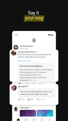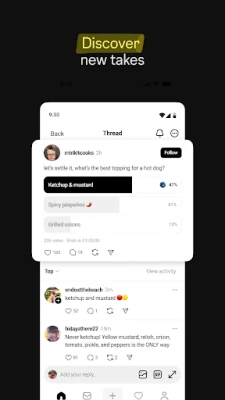 "Threads" ایک ایسا پلیٹ فارم ہے جہاں آج کے اہم موضوعات سے لے کر کل کے مقبول رجحانات تک ہر چیز پر بات چیت کے لیے کمیونٹیز اکٹھی ہوتی ہیں۔ یہ ایک ایسی جگہ ہے جہاں آپ اپنی پسند کی چیزوں کے بارے میں گہرائی میں جا کر تبادلہ خیال کر سکتے ہیں۔ اپنے پسندیدہ تخلیق کاروں اور ہم خیال افراد سے براہ راست جڑیں، یا اپنے خیالات، آراء اور تخلیقی صلاحیتوں کو دنیا کے ساتھ شیئر کرنے کے لیے اپنی ایک وفادار برادری تیار کریں۔ "Threads" آپ کو اپنی منفرد آواز کو بلند کرنے اور بامعنی مکالمات میں حصہ لینے کا موقع فراہم کرتا ہے۔